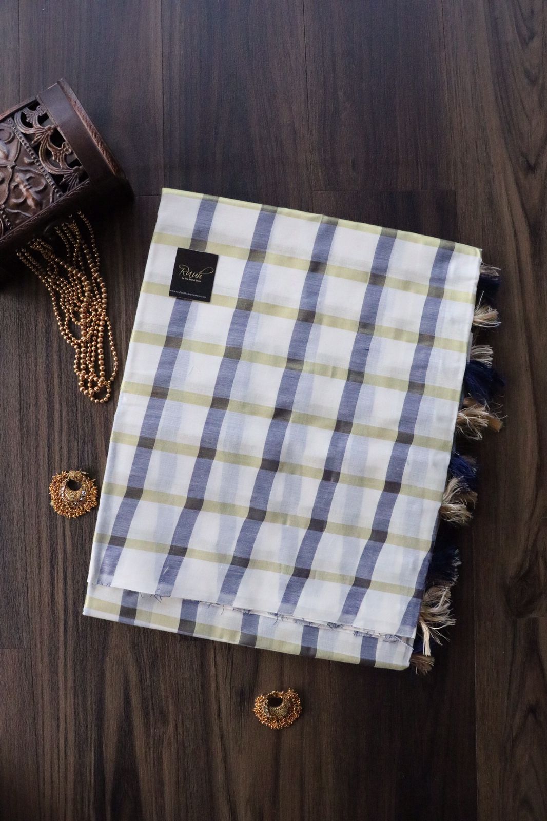Blue X Gold checks and tassles