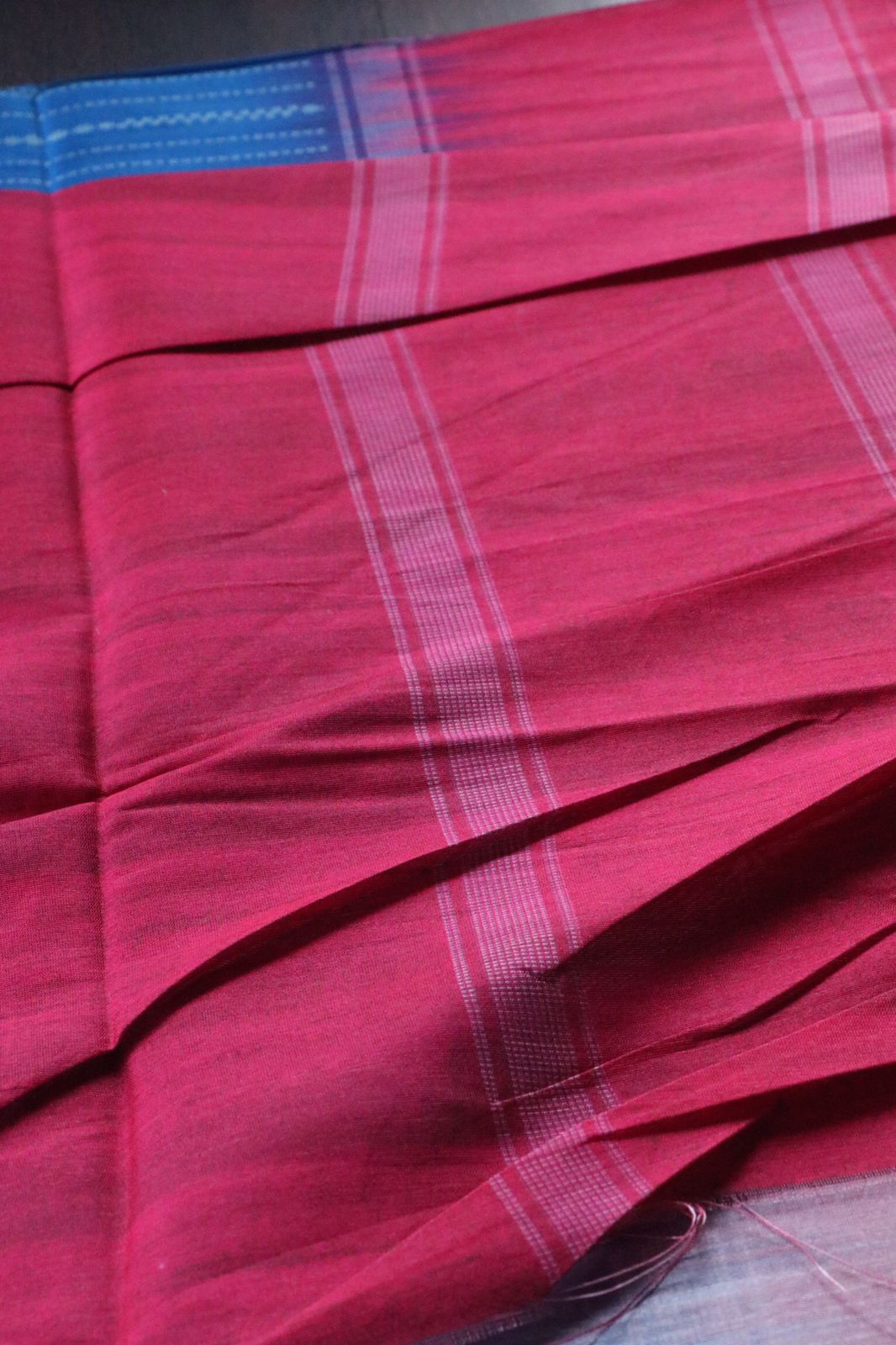 Semi silk saree with contrast border , pallu and blouse .