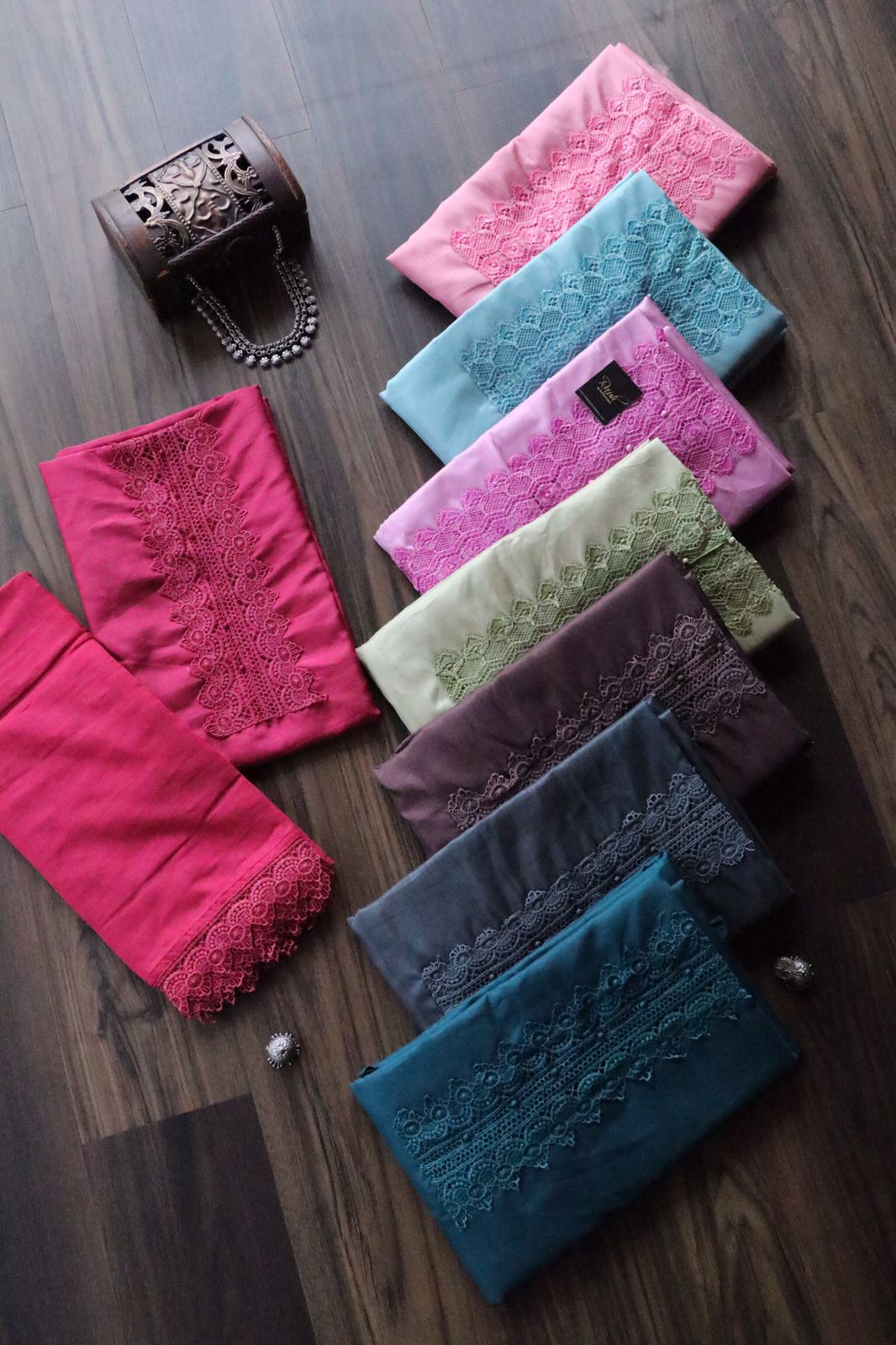 Unstitched Semi Silk Salwar suit Materials with lace work on yoke.