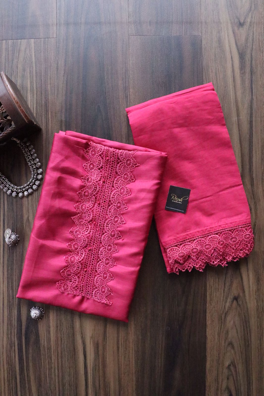 Unstitched Semi Silk Salwar suit Materials with lace work on yoke.