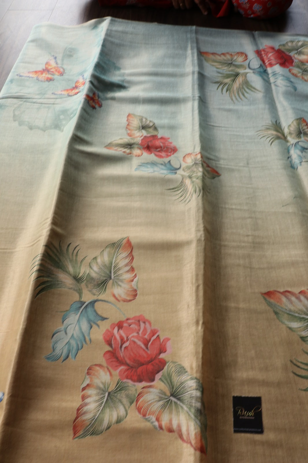 Tissue floral saree with digital print . All sarees are shaded patterned